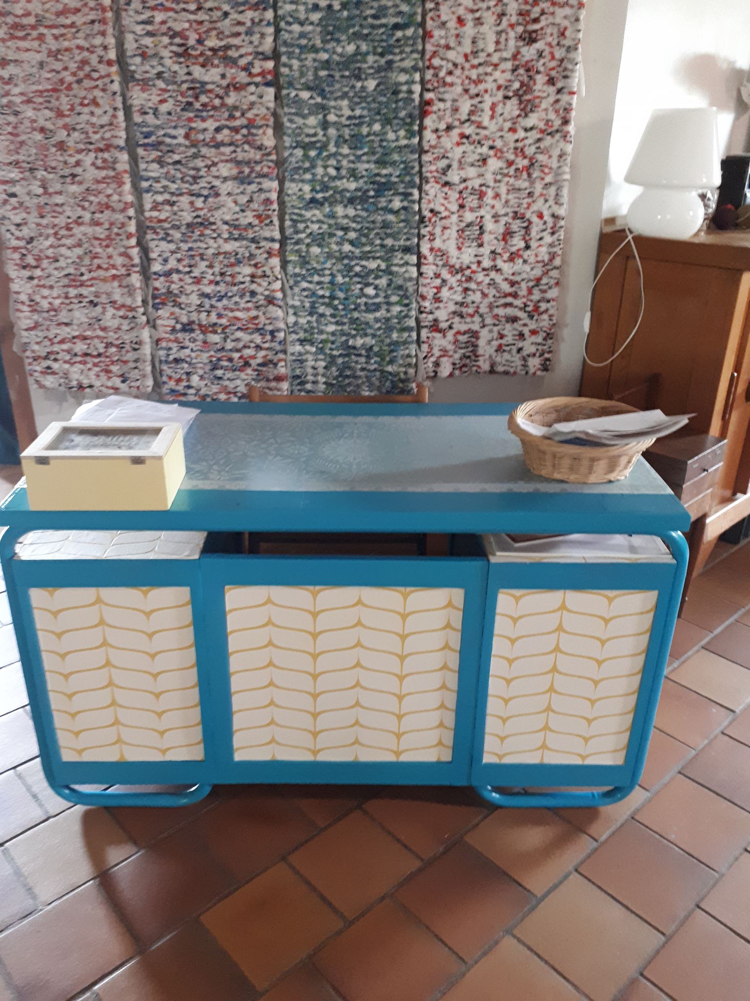 - Tapisser votre meuble: coller une petite bande de papier peint sur le bord haut puis à l'aide d'un petit rouleau, "marouflez", c'est à dire que vous appliquez le papier peint de sorte à empêcher toute petite bulle ou fissure de s'installer sur votre collage. Terminer l'opération en passant un torchon sur la partie collée afin de faire partir toutes les imperfections.